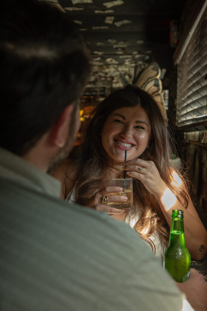As a Houston engagement photographer, these are the sessions that make my heart light up. Candid, documentary-inspired, true-to-you moments that show who a couple really is. Liz and Austin didn’t need a fancy setting or a dramatic landscape. They just needed a place that let them relax, be themselves, and enjoy each other’s presence — and a dive bar in the middle of Houston was exactly that.